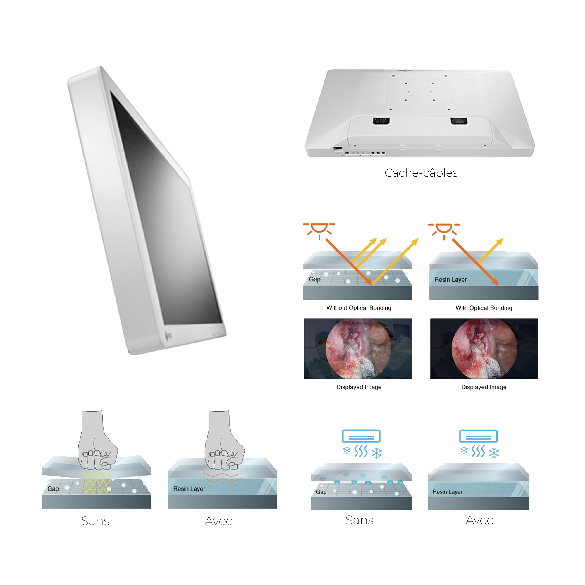 Réglage indépendant des images, avec prise en charge des modes gamma (1,8 - 2,6) ou DICOM®, idéal pour afficher plusieurs modalités médicales (endoscopie, IRM, CT).